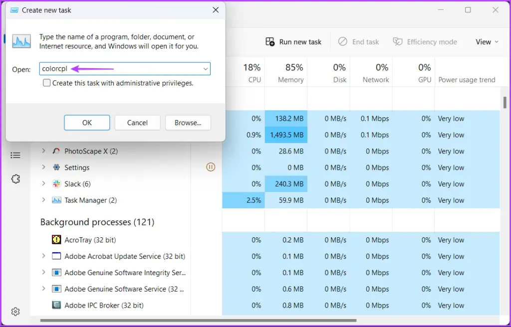2. Öffnen Sie das Farbmanagement über den Task-Manager-Dialog