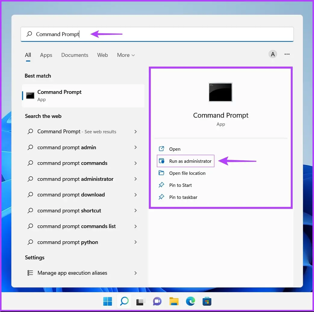 Wenn Sie schnell die Eingabeaufforderung oder PowerShell öffnen, können Sie die Farbverwaltung in Windows bequem mit einem einfachen Befehl starten. Natürlich gibt es einen Unterschied zwischen PowerShell und der Eingabeaufforderung, aber beide funktionieren gut zum Öffnen von Dienstprogrammen oder Tools in Windows. Hier erfahren Sie, wie Sie beide verwenden.Schritt 1: Drücken Sie die Windows-Taste + S, um die Windows-Suche zu öffnen, und geben Sie Eingabeaufforderung oder PowerShell ein. Wenn die Suchergebnisse angezeigt werden, klicken Sie auf „Als Administrator ausführen“, um sie mit Administratorrechten zu öffnen.