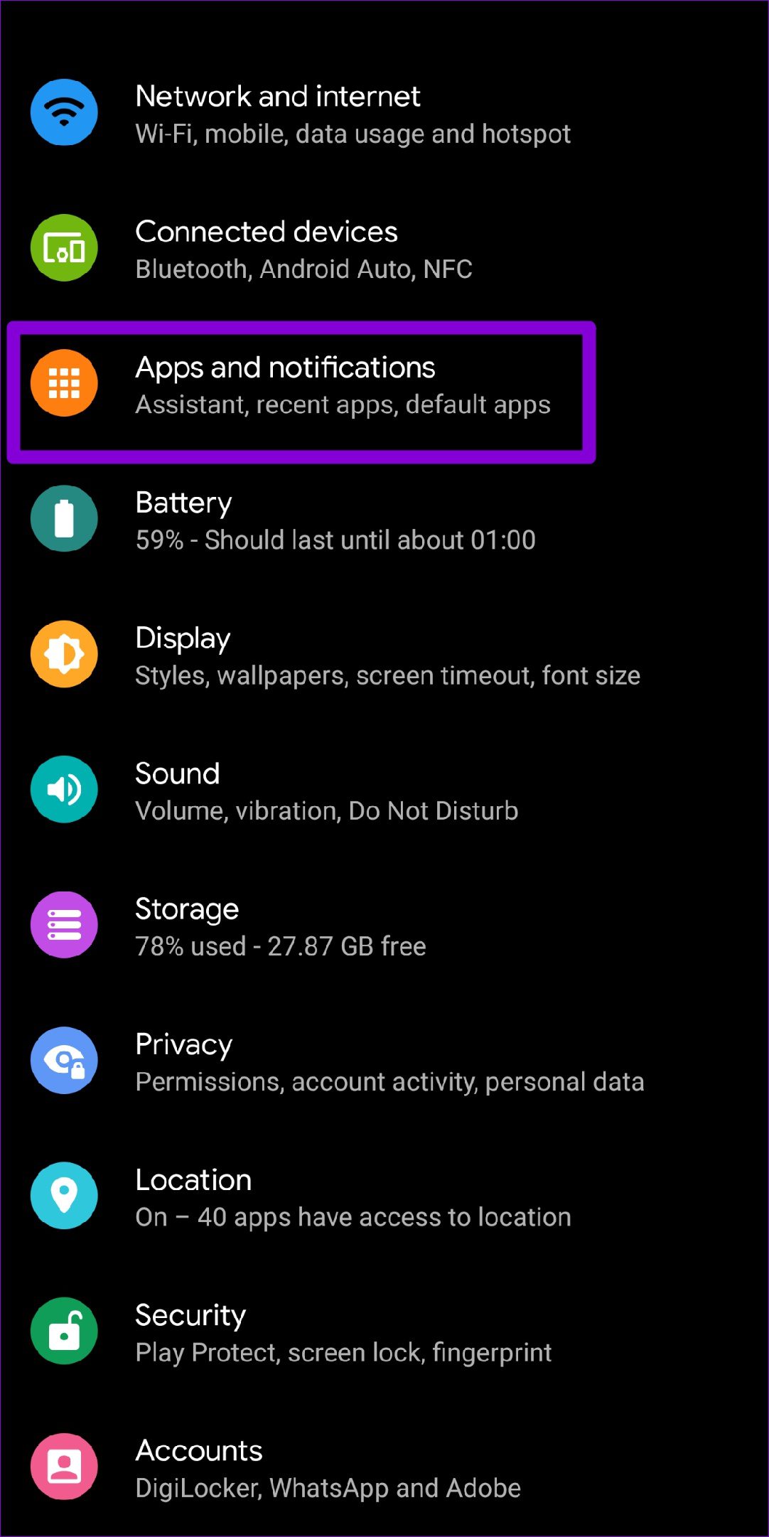 Adaptive Helligkeit kann nützlich sein, aber sie ist nicht perfekt. Da es sich auf Ihre vorherigen Helligkeitsgewohnheiten stützt, kann die Funktion Probleme haben oder die Helligkeit unter den falschen Umständen anpassen.Glücklicherweise bietet Ihnen Ihr Android auch die Möglichkeit, die adaptive Helligkeit zurückzusetzen. Die Reset-Option ist tief in der App „Einstellungen“ versteckt, aber Sie können die folgenden Schritte ausführen, um darauf zuzugreifen.Schritt 1: Öffnen Sie die Einstellungen auf Ihrem Android und gehen Sie zu Apps & Benachrichtigungen. Tippen Sie dann auf Alle Apps anzeigen.