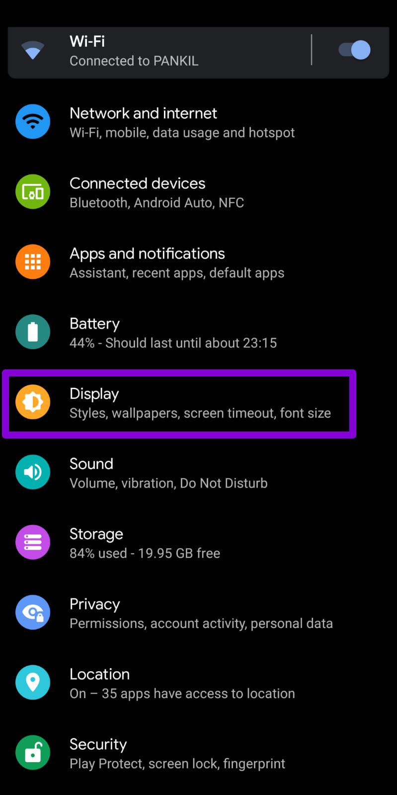 Vielleicht hast du das schon gemacht, aber es schadet nie, es noch einmal zu versuchen. Gehen Sie also weiter und ändern Sie die adaptive Helligkeitsoption auf Ihrem Android, indem Sie die folgenden Schritte ausführen: Öffnen Sie die App „Einstellungen“ und gehen Sie zu „Anzeigeeinstellungen“. Tippen Sie auf Adaptive Helligkeit und schalten Sie den Schalter daneben ein.