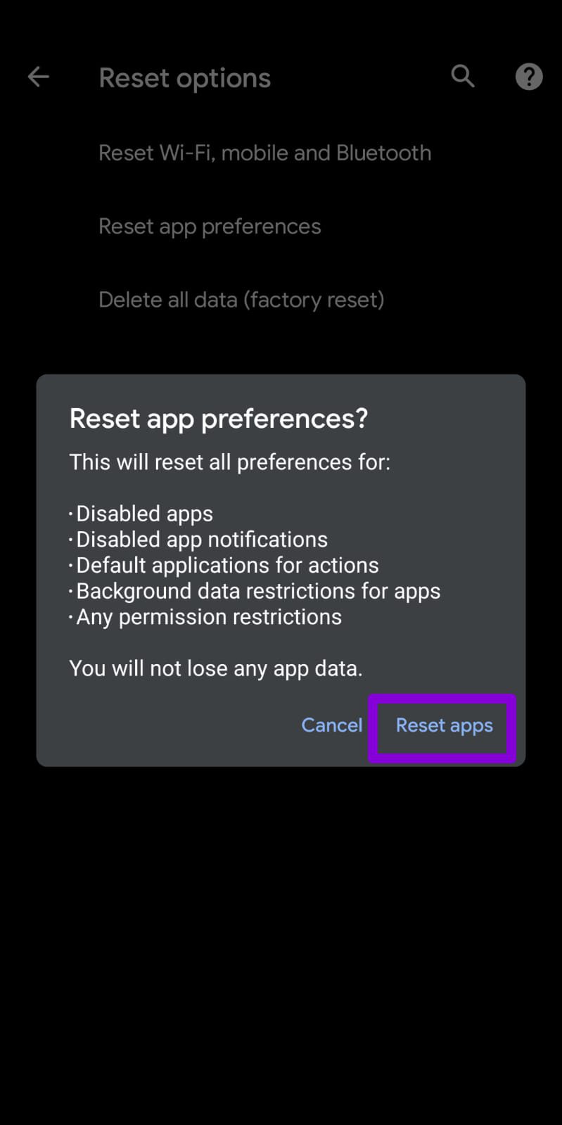 3. App-Einstellungen zurücksetzen