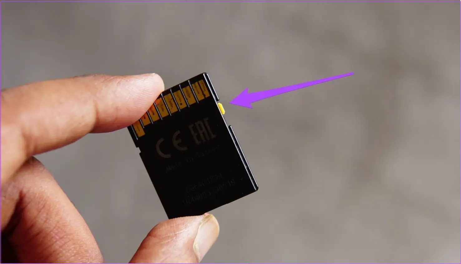 Jede SD-Karte wird mit einem kleinen Schiebeschalter an der Seite geliefert, der dabei hilft, die Karte zu sperren, um eine Änderung oder Löschung von Daten zu verhindern. Obwohl Sie Ihre Daten auf der SD-Karte überprüfen können, obwohl sie gesperrt ist, empfehlen wir, die Karte zu entsperren und zu prüfen, ob das Problem behoben ist.
