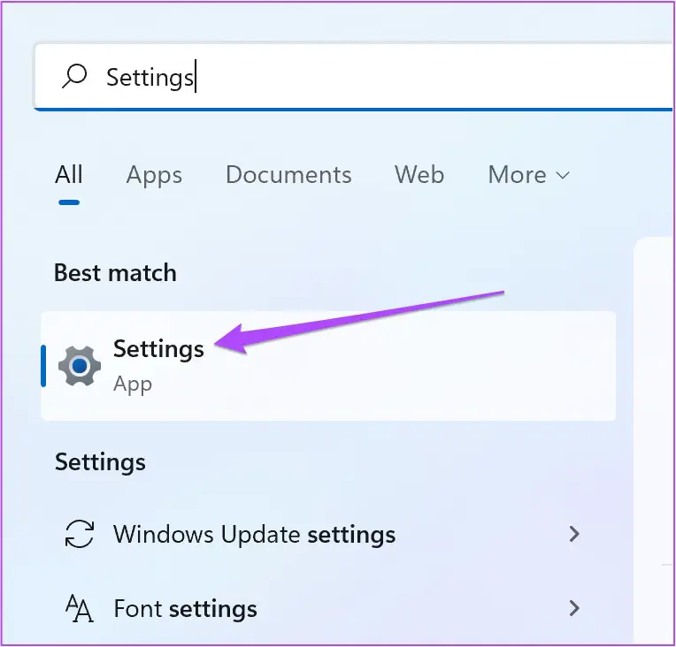 Wenn keine der Lösungen für Sie funktioniert hat, besteht der letzte Ausweg darin, die Version von Windows 11 auf Ihrem Computer zu aktualisieren. Dadurch werden alle Fehler oder Störungen behoben, die dazu führen könnten, dass diese SD-Karte nicht angezeigt wird.Schritt 1: Klicken Sie auf Ihrem Windows 11-PC auf das Startsymbol, geben Sie Einstellungen ein und drücken Sie die Eingabetaste.